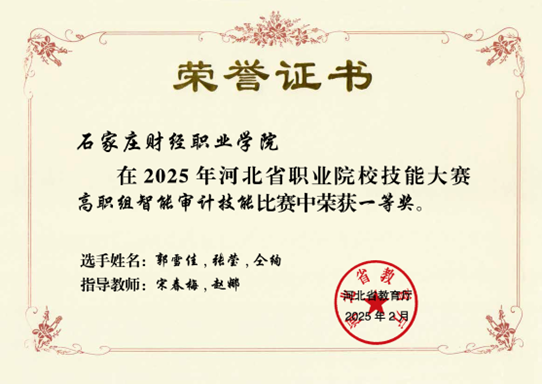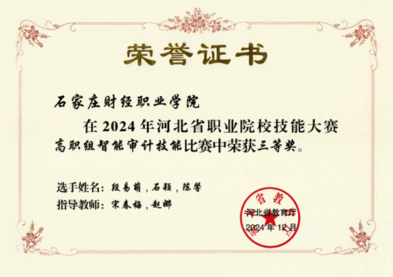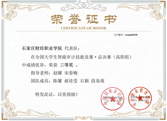 图三 审计技能赛项获奖证书