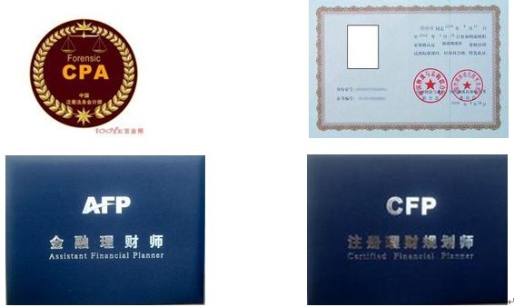 证券从业资格证书、期货从业资格证书、基金从业资格证书、银行从业资格证书、理财规划师证书等。