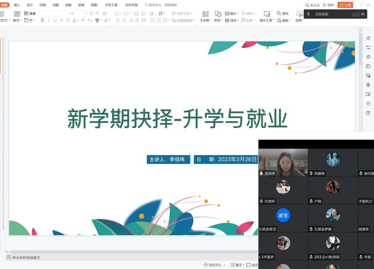 在开展主题班会过程中,李佳玮老师提到在面临选择升学还是就业的关键时刻,首先应该考虑以下几个问题: