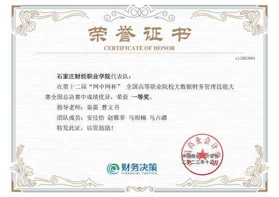 第十二届“网中网杯”全国高等职业院校大数据财务管理技能大赛全国总决赛一等奖
