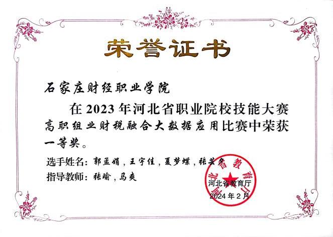 2023年河北省职业院校技能大赛高职组财税融合大数据应用比赛一等奖