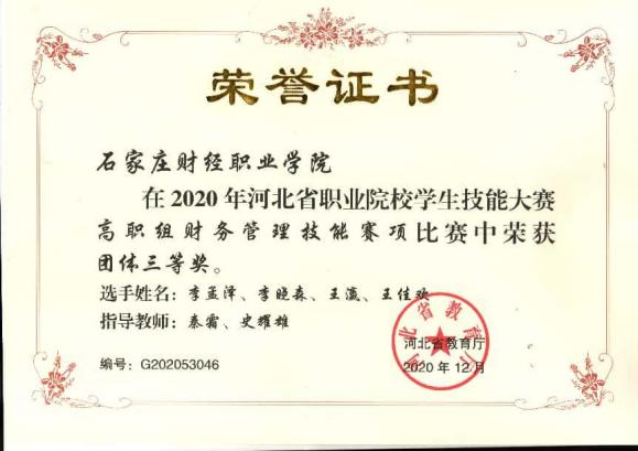 2020年河北省职业院校学生技能大赛高职组财务管理技能赛项团体三等奖