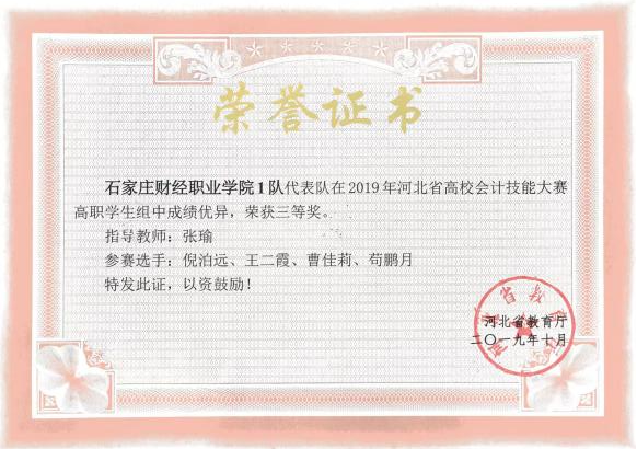 2019年河北省高校会计技能大赛高职学生组三等奖