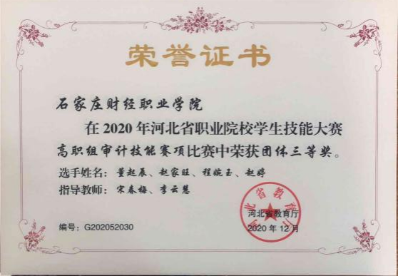 2020年河北省职业院校学生技能大赛高职组审计技能赛项团体三等奖