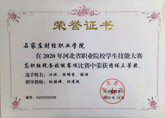 2020年河北省职业院校学生技能大赛高职组税务技能赛项团体三等奖