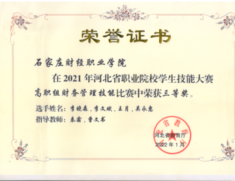 2021年河北省职业院校学生技能大赛高职组财务管理技能三等奖