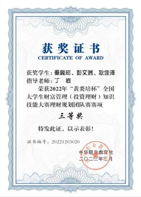 2022年“黄炎培杯”全国大学生财富管理(投资理财)知识技能大赛理财规划团队赛三等奖
