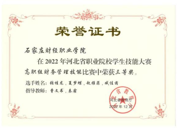 2022年河北省职业院校学生技能大赛高职组财务管理技能比赛三等奖