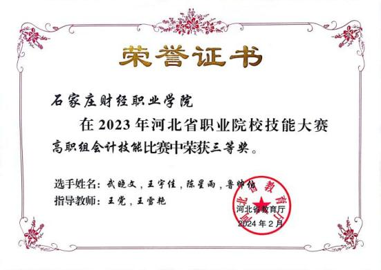 2023年河北省职业院校技能大赛高职组会计技能比赛三等奖
