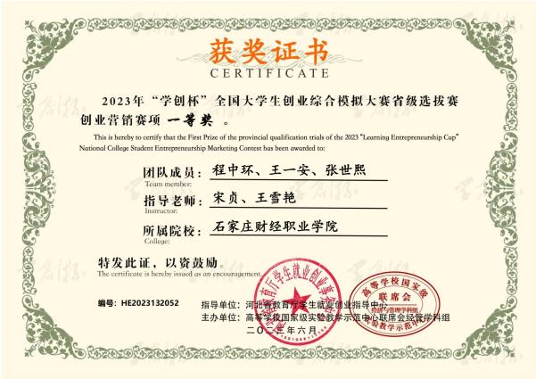 2023年“学创杯”全国大学生创业综合模拟大赛省级选拔赛创业营销赛项一等奖