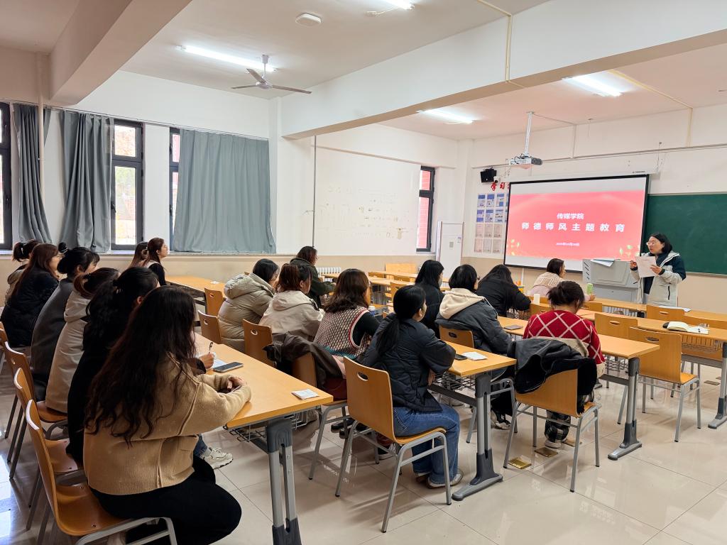 为深入贯彻落实新时代教师队伍建设要求,传媒学院于2025年10月15日至11月15日组织开展了以“以教育家精神铸魂强师,谱写教育强国建设华章”为主题的师德师风主题教育月活动。伟德官网于10月29日下午开展了本次主题教育的集中学习,学院全体教职工积极参与。