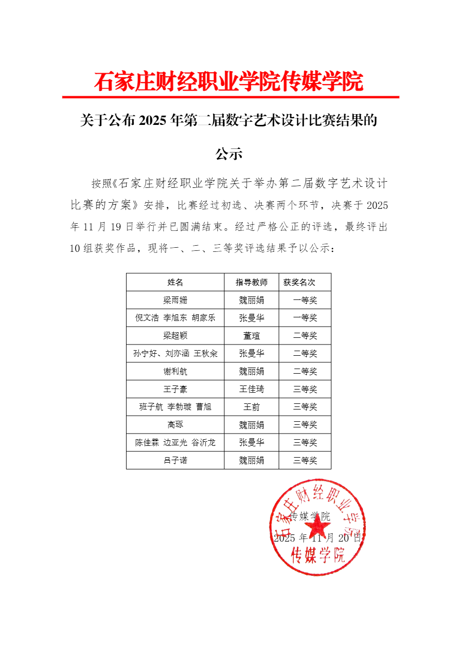 关于公布2025第二届数字艺术设计大赛结果公示