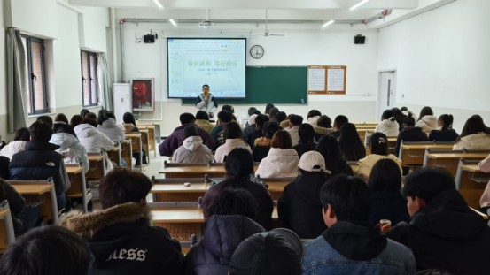 本次班会紧扣“春启新程 笃行致远--2026做飞驰的追光者”核心主题,辅导员通过分享交流、方法指导、政策重申、精神引领等丰富形式,让教育内容入耳、入脑、入心。寒假成长分享环节,辅导员引导学生畅谈假期学习、实践、生活感悟,交流阅读收获、社会实践经历与行业动态见解,增进师生沟通的同时精准掌握学生思想动态;随后着重强调新学期收心重要性,分享科学收心方法与时间管理技巧,引导学生调整作息和学习状态,组织制定新学期学习生活规划,明确阶段性目标。纪律文明教育环节,辅导员向学生重申大学生文明行为规范,强化规矩与纪律意识,以无烟校园建设和新学期校园综合检查为契机,督促学生戒除不良陋习,做好自我管理,展现新时代大学生的良好青春形象。雷锋精神引领环节,结合第63个学雷锋纪念日,引导学生缅怀英雄先烈,传承和弘扬雷锋精神,将个人成长与学校发展、国家建设相结合,践行青年担当。