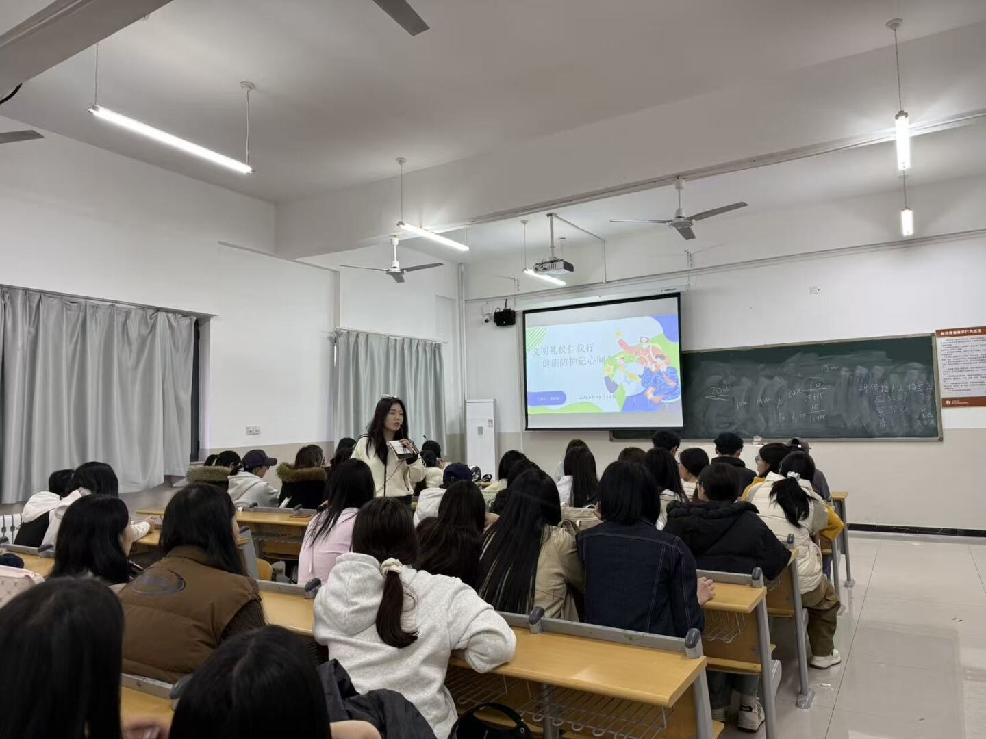 本次班会紧扣“文明礼仪伴我行 健康防护记心间”核心主题,辅导员通过案例分析、情景再现、主题讨论、知识问答等丰富形式,让教育内容入耳、入脑、入心。文明礼仪与行为规范教育环节,辅导员以学校大学生文明行为规范为准绳,从校园公共场合、人际交往、网络空间、日常品德修养四个维度展开讲解,引导学生聚焦日常学习生活具体场景,将文明礼仪内化为自觉行动,养成文明守纪的良好习惯;春季传染病预防教育环节,重点强调春季呼吸道和肠道传染病的高发风险,详细介绍流行性感冒、肺炎支原体感染、诺如病毒感染等常见传染病的症状,向学生普及科学精准的个人防护措施,督促学生做好健康监测,养成良好卫生、饮食、作息习惯,提高自身免疫力。