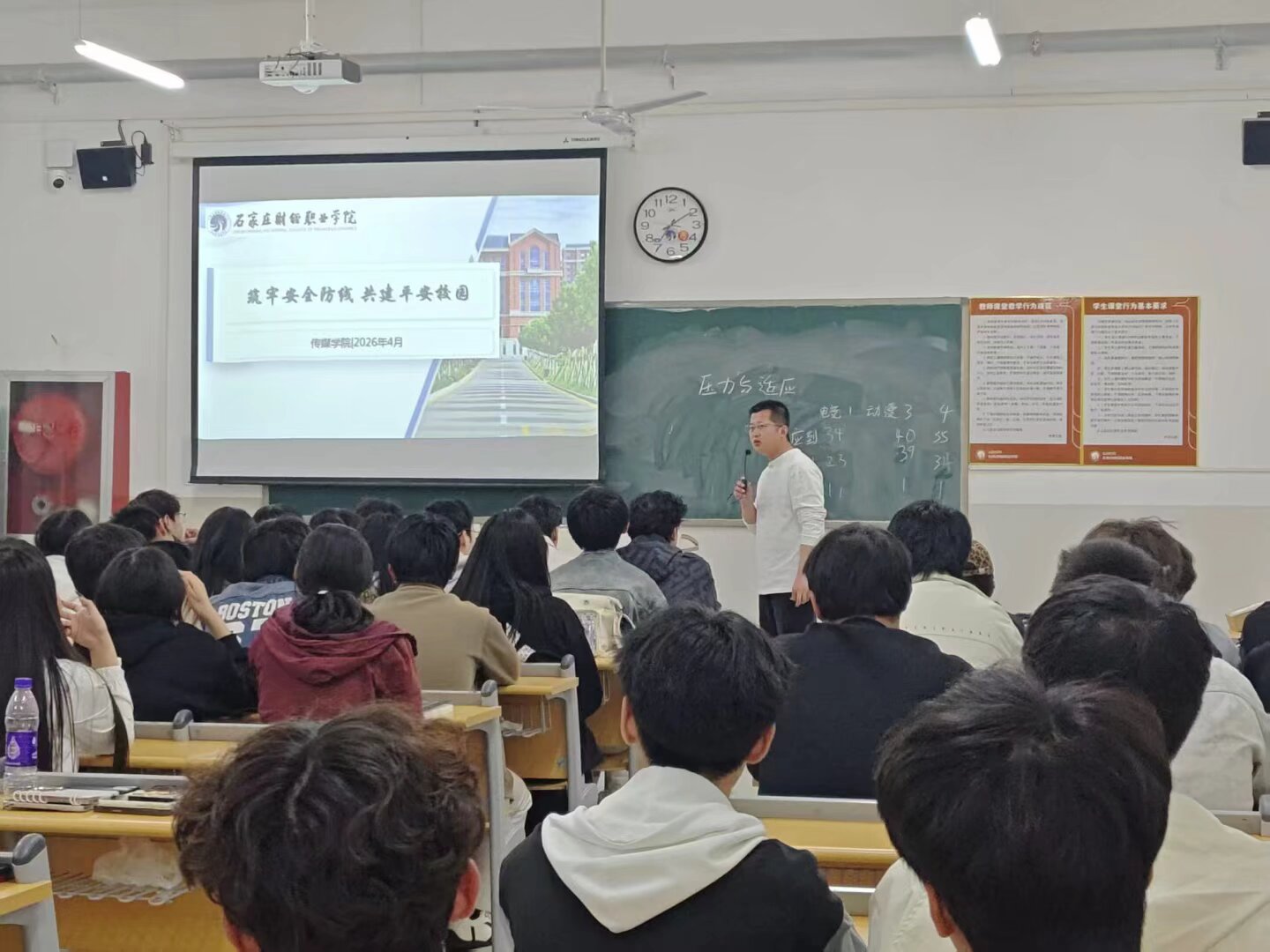 本次班会紧扣“筑牢安全防线 共建平安校园”核心主题,各班辅导员提前精心备课、设计环节,通过案例研讨、情景模拟、互动问答、观看警示教育片、主题讲解等丰富多样的形式,让教育内容真正入耳、入脑、入心。在核心教育环节,辅导员围绕校园安全重点维度开展全面宣讲引导:校园交通安全方面,结合校园交通环境及卧龙校区山路多、台阶密的实际,规范学生出行行为,抵御宗教渗透方面,引导学生树立马克思主义宗教观,明确教育与宗教相分离的法律原则,提醒警惕隐性宗教渗透行为,发现可疑情况及时报告;返校收心教育方面,督促学生调整状态回归正常学习生活节奏,结合学校春季运动会做好动员组织工作,鼓励学生积极备赛、文明观赛,提醒参赛学生科学训练避免运动损伤;关键时间节点教育方面,结合第77个世界卫生日“健康起点,希望未来”的主题,巩固春季卫生健康教育成果,进一步筑牢校园安全防线。此外,各班班会还结合学院实际,同步布置了新学期学生管理各项重点工作,明确了相关管理要求。