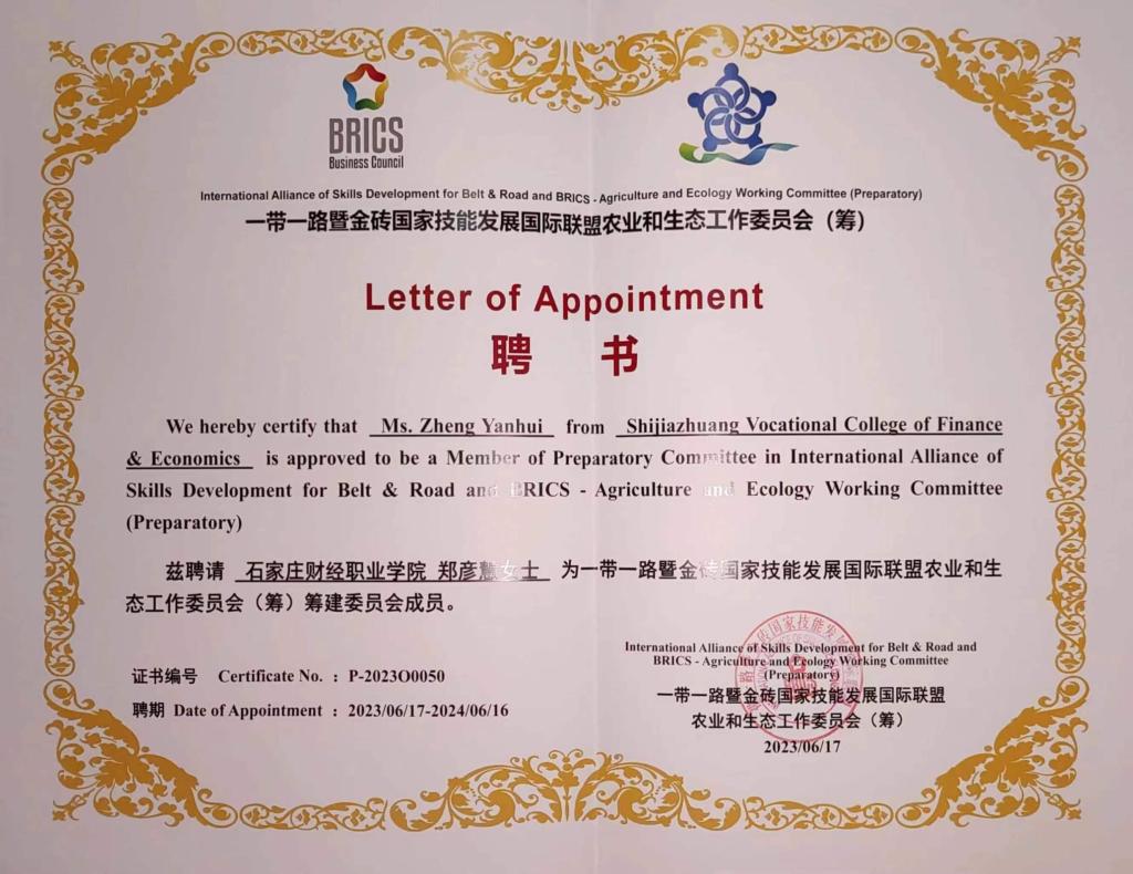 副校长郑彦慧获得聘书