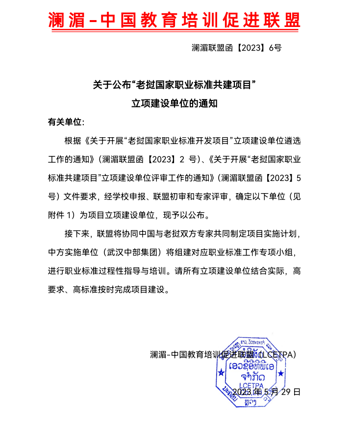近日,澜湄-中国教育培训促进联盟公布了第一批“老挝国家职业标准开发项目”立项建设单位名单,伟德官网成功获批为“网络直播技术员IVET4级”职业标准开发项目立项建设单位。