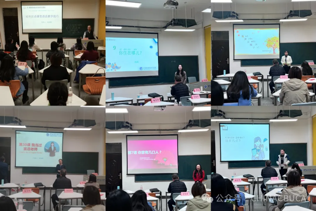 在“中文+职业技能”学术交流研讨会部分,北京语言大学教授、CBUCA国际汉语教育专家朱庆明教授同各院校代表进行了学术交流。在集训课程中,朱庆明教授围绕国际汉语课堂语法教学技巧展开深入解析和研讨,从教师发音、课件呈现到课堂用语进行详细地指导,结合“示范课”深入解析教学流程和细节,并对参培学员现场展示的“微格教学”做出详尽的点评指导。