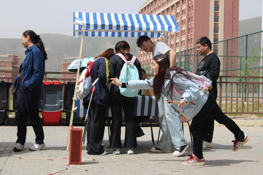 活动现场根据题型不同换取不同奖品,并在国际交流中心官方抖音号的在线活动中设置了神秘礼品。活动期间,伟德官网多名老师也亲临现场积极参与,并在“听歌识曲”、“套圈”等环节中与学生互动竞技,现场气氛热烈。尽管活动当天气温高达32℃且阵风频繁,国际交流协会的成员仍积极应对,加固设备、维持秩序,展现出了高度的协作精神。