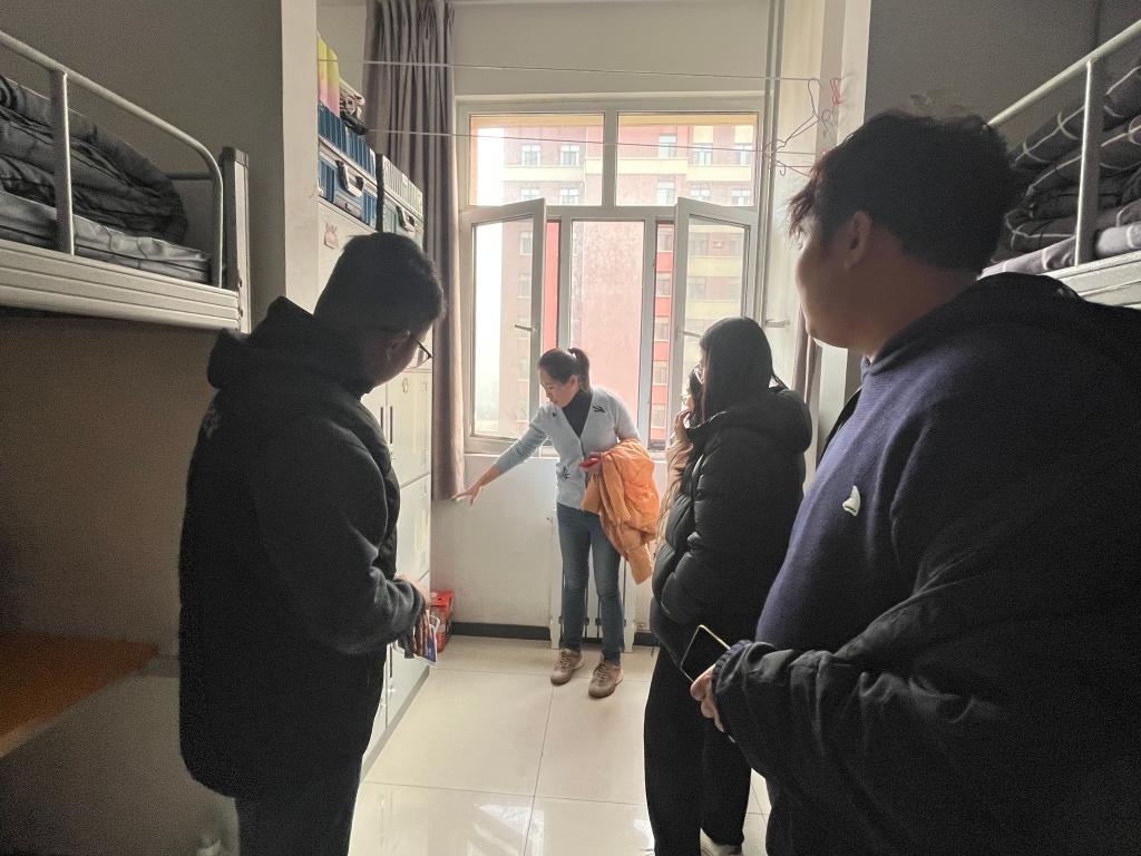 在检查过程中,伟德官网党总支书记郝艳在与同学们亲切交流,询问他们的学习和生活情况,关心他们在宿舍生活中遇到的问题。对于发现的安全隐患,郝艳在书记和辅导员们现场提出整改要求,并督促学生立即整改。
