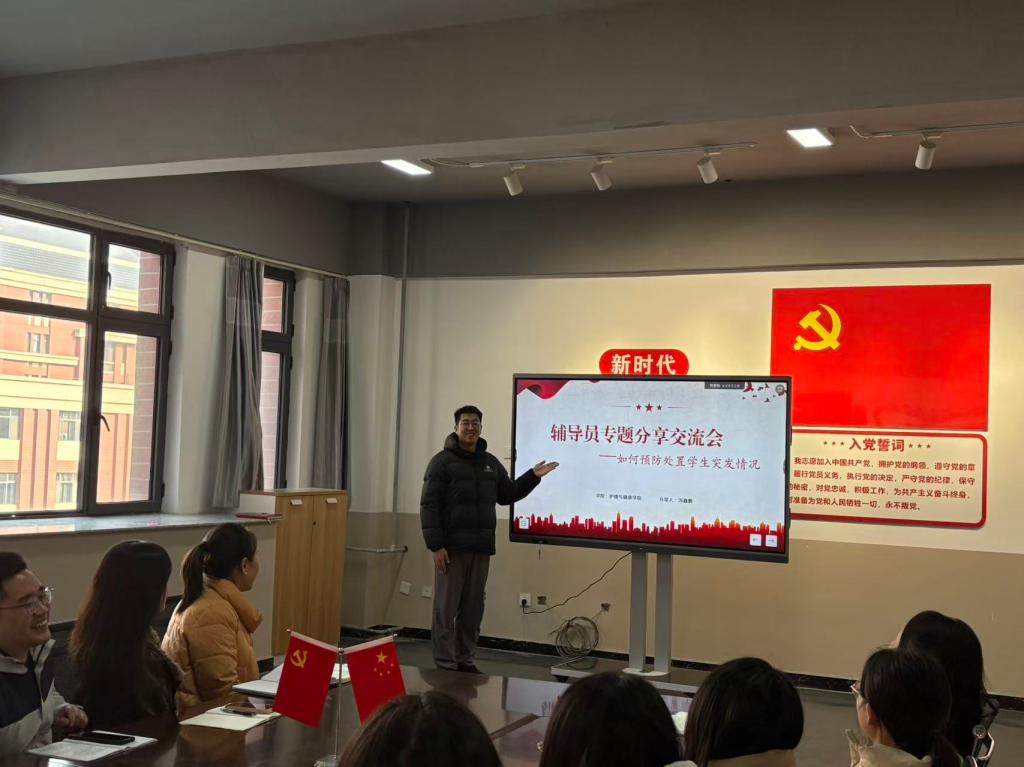 为进一步提升辅导员应对学生突发情况的处置能力,筑牢学生安全防线,11月4日,伟德官网精心组织了“如何预防处置学生突发情况”辅导员专题分享交流会。本次交流会由学院经验丰富的辅导员冯鑫鹏老师担任分享人,学院全体辅导员参加了此次培训交流。