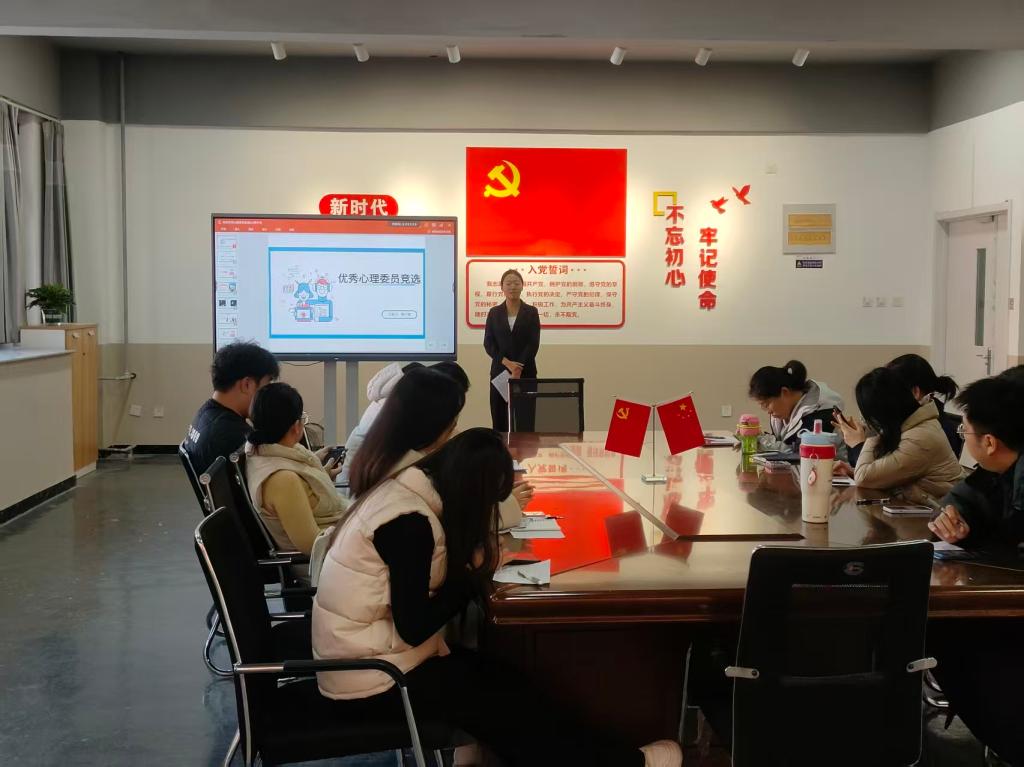 本次评选以“专业赋能成长,温情守护心灵”为主题,经过班级推荐、学院初审,6名优秀心理委员从全院候选人中脱颖而出。评选环节设置工作汇报、案例分析、情景模拟及现场答辩四大模块,全面考察候选人的专业素养、责任担当与实践能力。工作汇报中,候选人们通过PPT、微视频等形式,分享了组织“压力疏导”“情绪管理”等主题班会、策划宿舍团辅活动、搭建匿名倾诉渠道等特色工作,用详实的数据和生动的案例展现履职成效——有的坚持记录班级心理动态手册,零失误完成心理报表上报;有的创新开展“心灵树洞”信箱、心理漫画展等活动,让心理健康知识深入人心;有的及时发现同学情绪危机,联动辅导员与心理中心搭建帮扶桥梁,用专业与耐心化解困境。