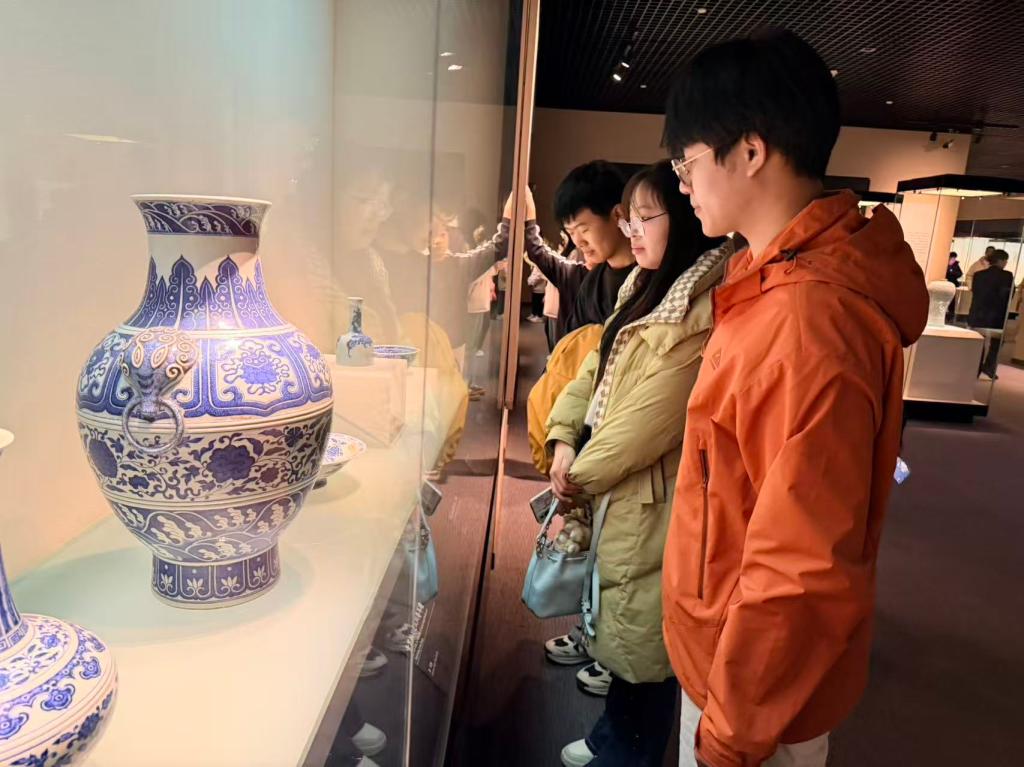 本次实践采用“沉浸式体验+专题调研”模式,团队分组开展问卷调查与深度访谈,收集燕赵文化审美感知一手数据;在《名窑名瓷》《曲阳石雕》展区,同学们品鉴定窑白瓷、邢窑青瓷的釉色之美,端详曲阳石雕的工艺精髓,探寻传统工艺中的审美密码。“燕赵文化的审美基因跨越千年依然鲜活。”参与调研的同学表示,实地探访让抽象文化概念转化为可感知的审美体验。
