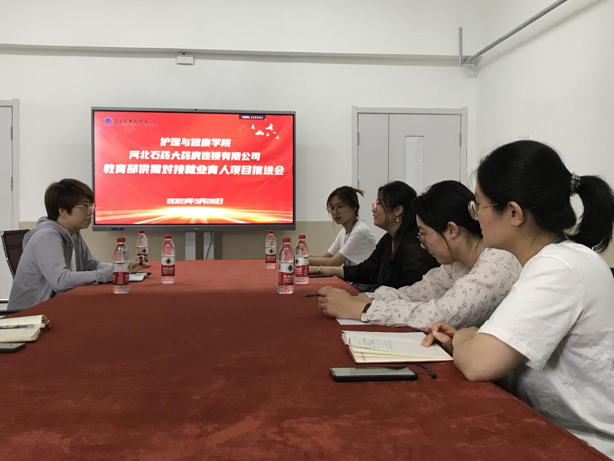 为落实党中央、国务院“稳就业”“保就业”决策部署,推动校企合作、产教融合,推动人才培养与就业有机联动、人才供需有效对接,推进落实教育部“供需对接就业育人”项目。5月26日特邀河北石药大药房连锁有限公司人事部经理丁柔等来到BV伟德官方网站进行企业宣讲并就“供需对接就业育人项目”的推动进行深度探讨。护理与健康学院院长乔赛男等一行人对她们的到来表示欢迎。