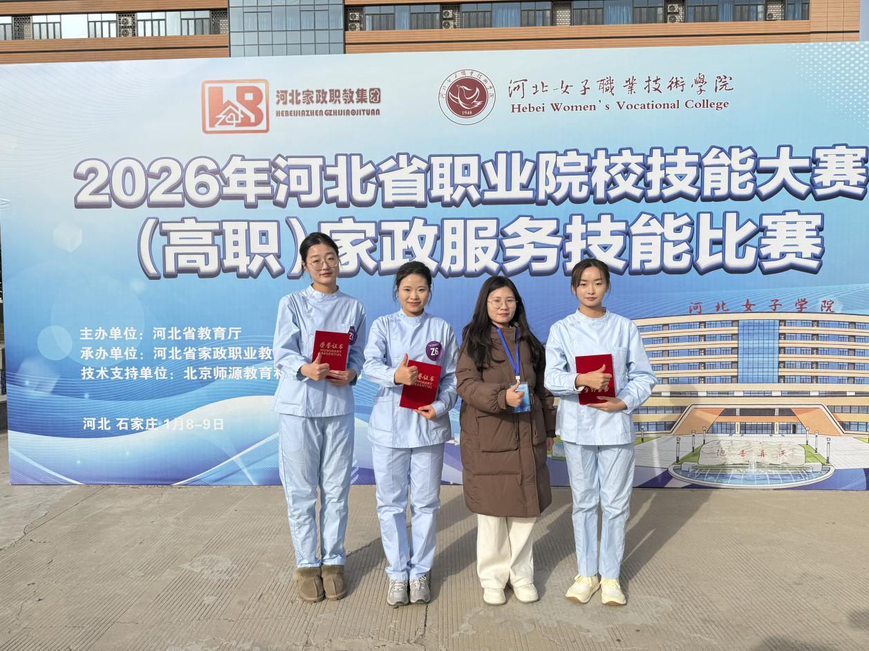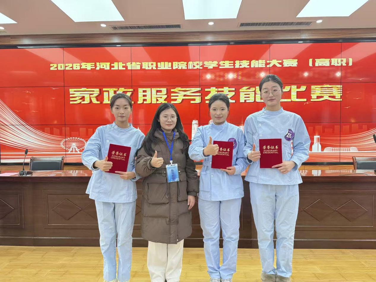 2026年1月7日至9日,由河北省教育厅主办的2026年河北省职业院校技能大赛(高职组)家政服务技能赛项,在河北女子职业学院成功举办。伟德官网24级智慧健康养老服务与管理专业学生王文欣、刘瑞文、贾胜兰组成的参赛队伍共同凭借扎实的专业功底、默契的团队协作与良好的职业素养,荣获团体三等奖!