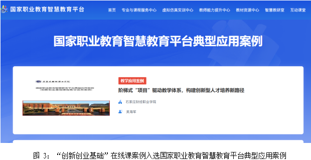 《创新创业基础》在线课程案例《阶梯式“项目”驱动教学体系,构建创新型人才培养新路径》入选国家职业教育智慧教育平台典型应用案例。