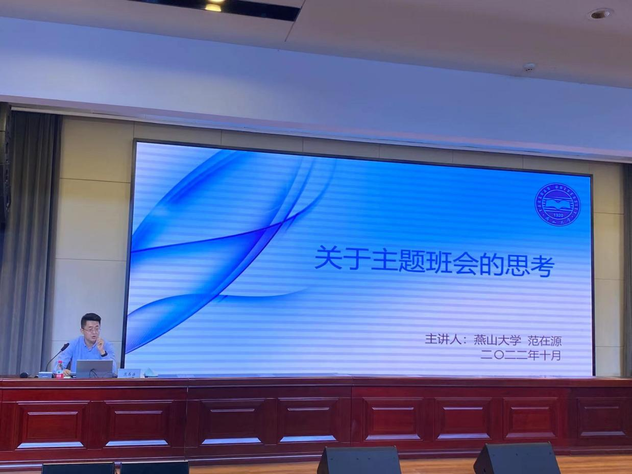 为进一步提升辅导员队伍专业化、职业化水平,发挥主题班会的育人作用。10月25日下午,燕山大学范在源老师做客伟德官网,为辅导员老师带来“关于主题班会的思考”专项培训。校长助理王永利、学生处处长王志军、各二级学院主管学生工作的书记、副书记及全体辅导员共计90余人参加培训。王志军主持培训会。