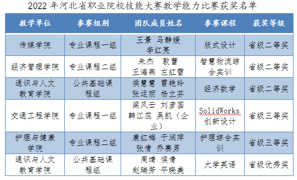 近日,河北省教育厅发布了2022年河北省职业院校技能大赛教学能力比赛结果,伟德官网再创佳绩,收获丰硕!选拔推荐的六个参赛团队荣获二等奖3项、三等奖2项,优秀奖1项。此外,给予经济管理学院院长刘娜“2022年河北省职业教育信息化教学工作先进个人”荣誉。“2022年河北省职业院校技能大赛教学能力比赛优秀组织奖”是对伟德官网参赛工作组织成效的认可。