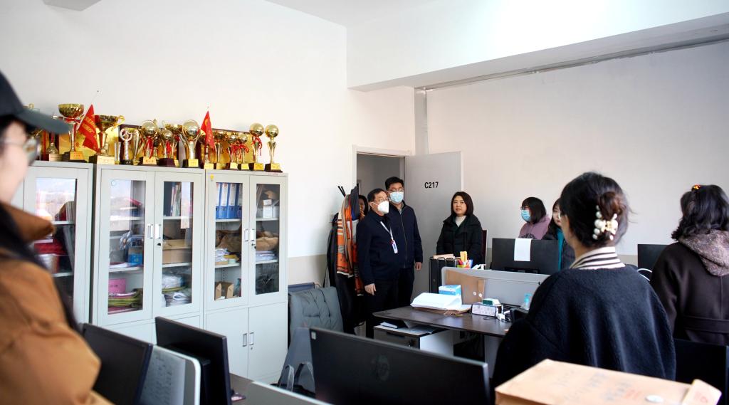 校领导一行逐一走访了各二级单位,与返岗工作的教职工进行了亲切交谈,对开学供暖、教材教案准备、教学软件安装、实训设备调试以及“阳康”后身体健康等情况进行了详细了解,并对新学期的工作提出指导性意见,为教职工新学期开展各项工作加油鼓劲。