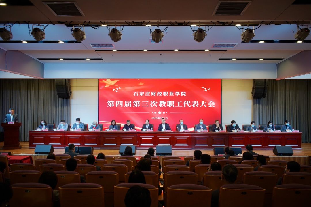 赵建华作了题为《勇抓机遇 奋楫笃行 向省内一流、全国知名高职院校不断迈进》的工作报告。报告回顾了一年来学校在党的建设、疫情防控、提质培优、分类教学、绩效考核、学生管理、校企合作、信息化建设、文化建设、国际交流、后勤服务、安全稳定等各方面取得的显著成绩。报告指出,2023年既要着力巩固已取得的成效,同时也要以省域“双高”校建设为指引,以“提质培优”为主线,坚定主攻方向,强化实效措施,采取“整体推进、重点突破”发展理念,坚持日常工作与重点工作齐抓、目标管理与过程管理并重,高质量推进省内一流、全国知名高职院校建设。希望广大教职工继续勇于担当、同心同德、顽强奋斗,以更加务实的行动书写财经新篇章。