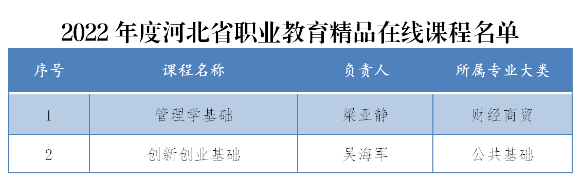近日,河北省职业教育与成人教育处公布了《关于2022年度河北省职业院校数字教学资源建设项目验收评审结果公示的通知》,伟德官网2门精品在线课被评为“2022年度河北省职业教育精品在线课程”。