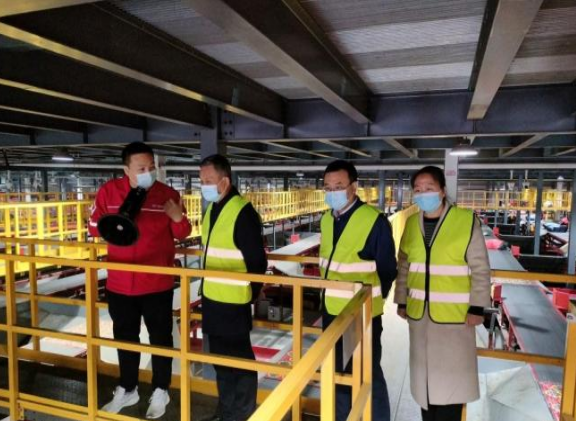 在极兔速递京津冀代理区石家庄转运中心李晓璞主管的引导,任保超、李涛、檀新凯、腾洋、逯鹏飞的陪同下,伟德官网领导一行参观了极兔速递石家庄转运中心进出港库区,并由李晓璞主管介绍了现场操作的业务。