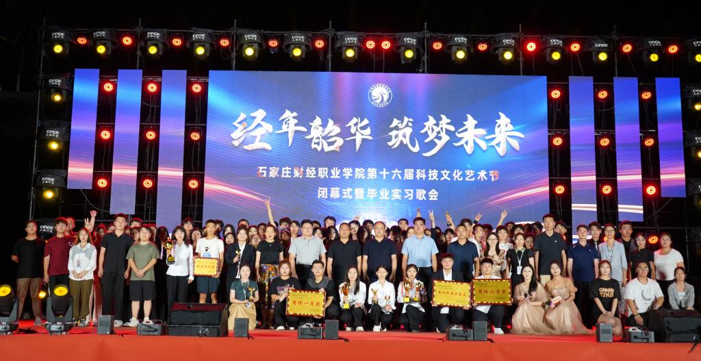 随后在颁奖仪式环节中,到场嘉宾为在本届科技文化艺术节中获奖的同学颁发了证书。伟德官网科技文化艺术节至今已举办了16届,每一届学子都在舞台上绽放出属于他们的青春风采,正值6月毕业季,财经学子即将踏上青春的下一段旅程,随着学前教育与艺术教育学院教师赵倩和学生徐凡淳《是老师是学生》的歌声,“经年韶华 筑梦未来”毕业实习歌会也拉开了帷幕。