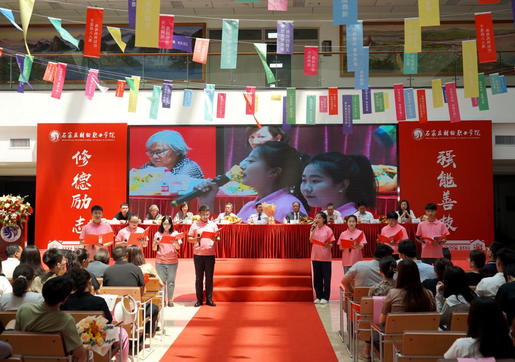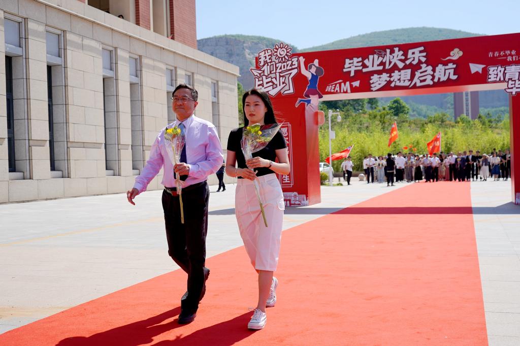 随后,毕业生代表登台,向学校领导、老师献上美丽的鲜花,表达对母校和师长的感恩留恋和真挚祝福。他们希望母校在接下来的时光中能够桃李满园,春晖四方,大展宏图,再谱华章!