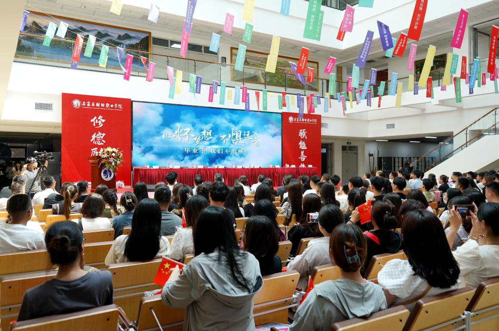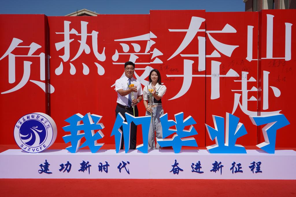青春点亮人生路,毕业扬帆再起航!盛夏的校园处处洋溢着对毕业学子的温暖与祝福,寄托着对毕业生未来走向辉煌的美好祝愿。校领导与毕业生代表携手,穿过象征初始和未来的毕业门,踏上通往未来的红毯,手持缤纷灿烂的鲜花,红毯尽头错落有致的“不负热爱 奔赴山海”创意文字打卡墙、“青春万岁”打卡台阶、“我爱财经”专属定制可乐、有着财经生涯始终的“独家记忆”,校领导与毕业生拆“盲盒”拍照打卡区,以及青春寄语小彩旗等等,无不流露着学校的浓浓心意,讲述着财经学子的点滴成长,诠释着同学们热情洋溢的精神风貌,以极具仪式感的方式为毕业生们的学生生涯画上了圆满的句号。
