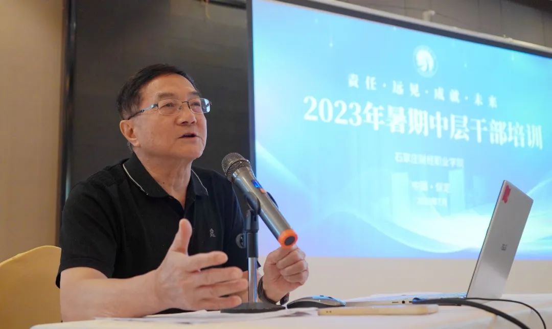 7月5日上午,2023年暑期中层干部培训班顺利在保定白石山滨湖酒店开班,赵建华作重要讲话。他首先宣布了学校近期校领导干部调整和中层干部任免相关事宜,并指出随着学校的发展对干部队伍的需求会不断增加,选好干部、培养干部和用好干部也是学校发展过程中的一件大事,组织中层干部培训旨在利用假期时间让领导干部静下心学习一些相关文件、研讨学校发展事项,同时也为大家提供且加强干部间交流联系的机会。希望大家充分利用此次培训学习并了解与学校建设发展息息相关的大事,共同为推动学校“双高”校建设和高质量发展做出新的更大贡献。