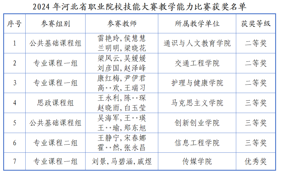 近日,河北省教育厅发布了2024年河北省职业院校技能大赛教学能力比赛结果,伟德官网选拔推荐的7支团队参赛,荣获二等奖3项、三等奖3项,优秀奖1项,获奖作品总数和获奖等级创历史新高。