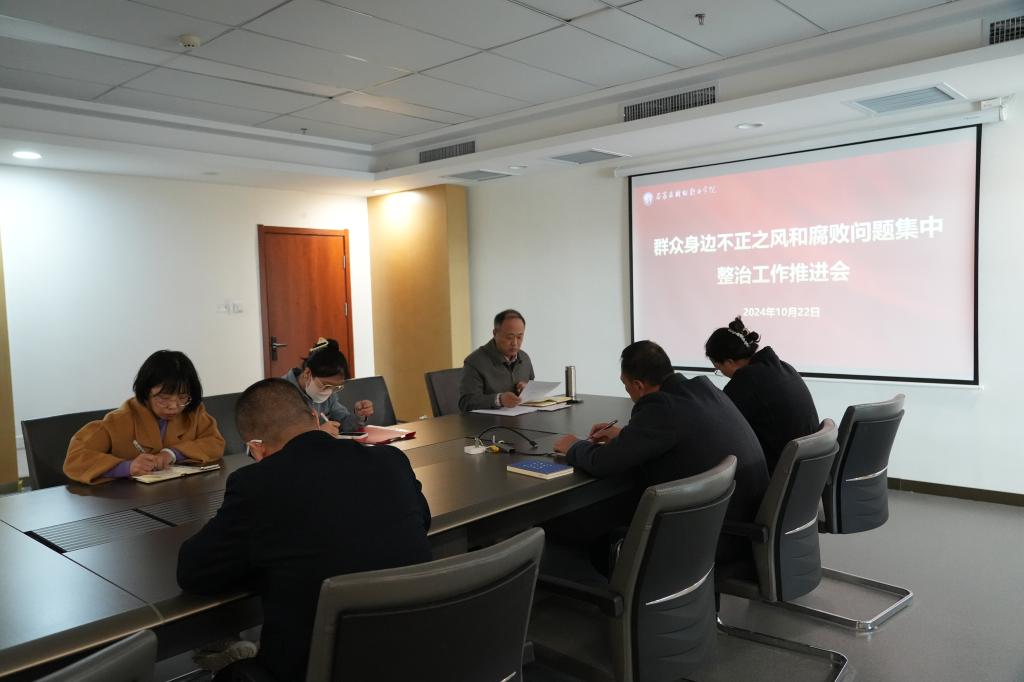 10月22日下午,伟德官网召开群众身边不正之风和腐败问题集中整治工作推进会议,校党委书记薛向东主持会议,党政办公室、人事处、宣传部、教务处、学生处等相关部门负责人参加会议。