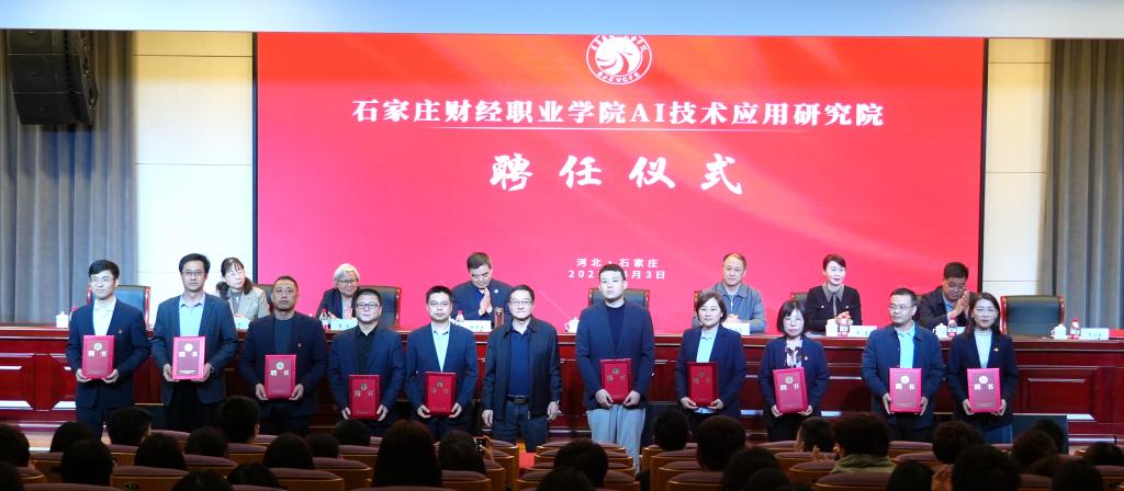 校长赵建华与党委书记薛向东共同为“BV伟德官方网站AI技术应用研究院”揭牌,并为各位老师颁发聘任证书。