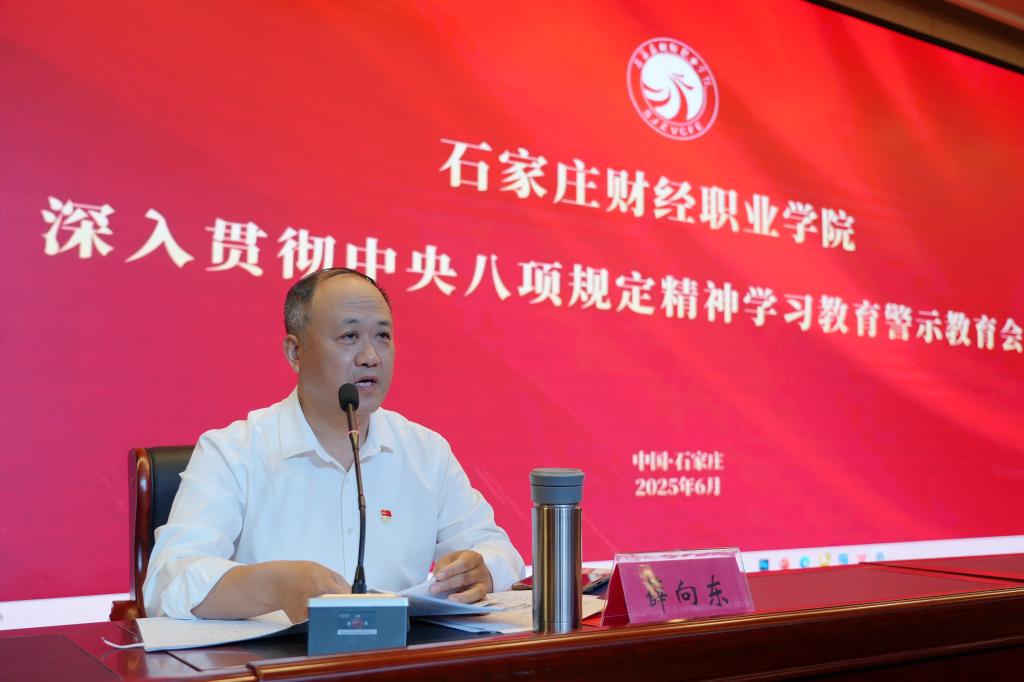 6月23日,伟德官网召开深入贯彻中央八项规定精神学习教育警示教育会,旨在深化全体党员干部对党的作风建设重要论述的理解,以典型案例为镜鉴,推动作风建设走深走实,为学校高质量发展筑牢纪律根基。全体校领导出席会议,全体中层干部、全体党员参会,学校党委书记薛向东主持会议。