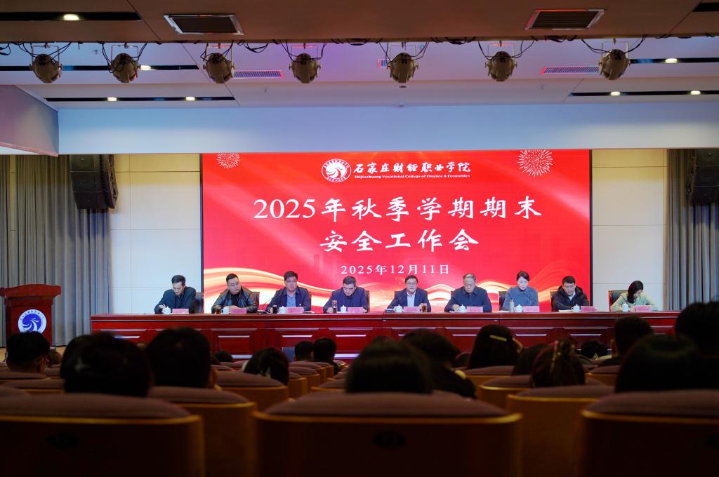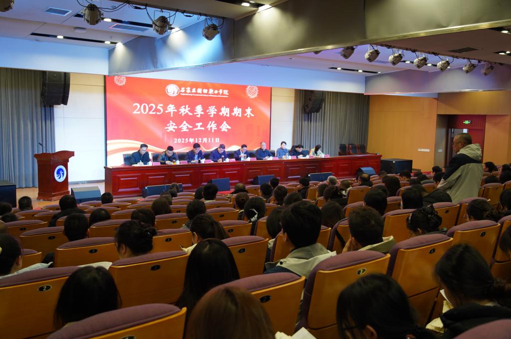 12月11日,伟德官网在图书馆第一报告厅召开2025年秋季学期期末安全工作会议。校长赵建华、党委书记薛向东、副校长高森、王永利、校长助理赵振新、邓佳星、张永昌出席会议。全体中层干部、辅导员及校园商户代表参加会议,会议由副校长王永利主持。