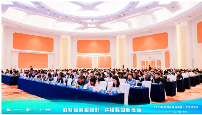 11月5日-7日,由中国教育在线主办的“2025年全国高校招培就工作交流大会”在南京举办。来自全国各省市教育主管部门相关负责人,以及800余所高校招生、就业、教务工作负责人和教育界专家学者共1500余人参加本次大会。