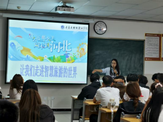 活动伊始,三位老师以“开启‘旅’程,智创未来”为主题,围绕“是什么、学什么、做什么”三大核心板块展开讲解。在“是什么”环节,结合 2025 年上半年国内居民出游32.85亿人次(同比增长 20.6%)的行业数据,指出旅游业作为“永不落幕的朝阳产业”,正加速向数字化、智慧化转型,虚拟旅游、AI旅游助手、智慧景区等新业态不断涌现。同时,分析了行业人才需求趋势,强调当前酒旅业急需 IT与 AI人才、旅游主播、旅行定制师等“10+1”类新型人才,让新生清晰认识到专业价值与发展潜力。