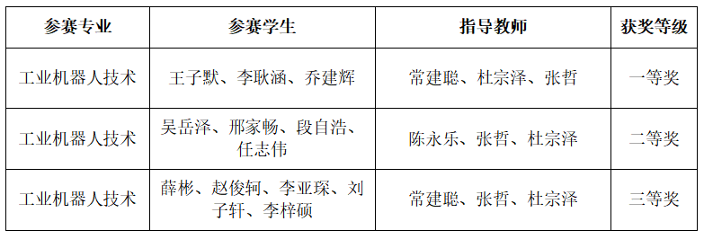 “机器人系统集成应用技术”一院一赛获奖名单