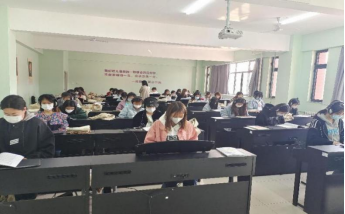 10月12日,实训楼C404,2021级学前教育4班,金雁老师的“幼儿教师音乐技能2”课程,学生均在认真练习,课堂氛围良好。