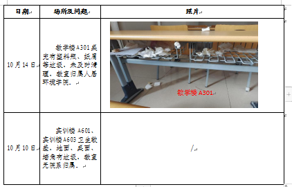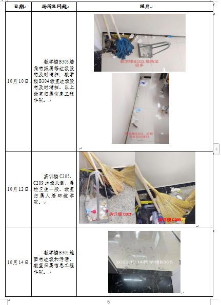 5.建议各学院加强学生的素质教育工作,通过班会等形式教育学生不带食物进入教室、保持教学环境的整洁,同时规范课堂秩序,避免学生出现迟到、旷课或者课上睡觉等违纪行为,维持良好的教学氛围。